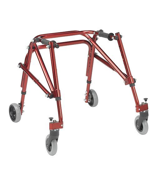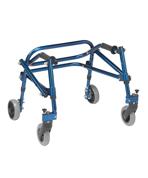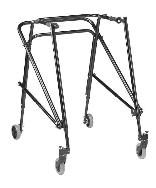The Nimbo Posterior Walker provides users with needed support for better ambulation. The Nimbo is lightweight, height adjustable, and folds for transport. The 5″ front and rear wheels are soft rubber wheels that can grip any surface and will not slide backward. The rear wheels can be set to forward rolling only for those with limited ambulation ability. Smooth texture handgrip increases comfort while using the walker.