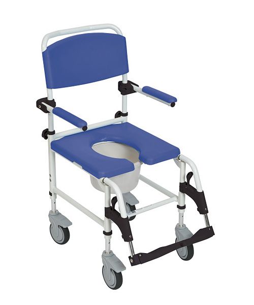 Aluminum Rehab Shower Commode Chair with Four Rear-locking Casters