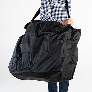 Transporting the Feather Chair could not be easier. The chair folds down into a compact package. First, fold down the backrest and then pull up in the middle of the seat. Optional, quick-release wheels allow a caregiver to remove the larger, back wheels with the push of the button. Once you arrive at your destination, unfolding and attaching the wheels takes less than a minute.