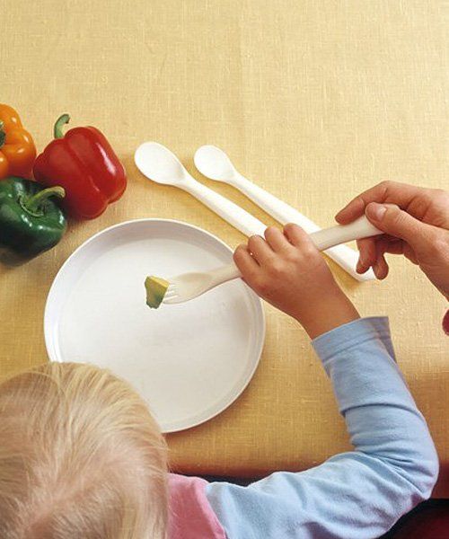 The top of the handle enables a comfortable grip for the assisting person and also leaves space for the person being fed to grip. The flat and smooth design feels pleasant in the mouth.