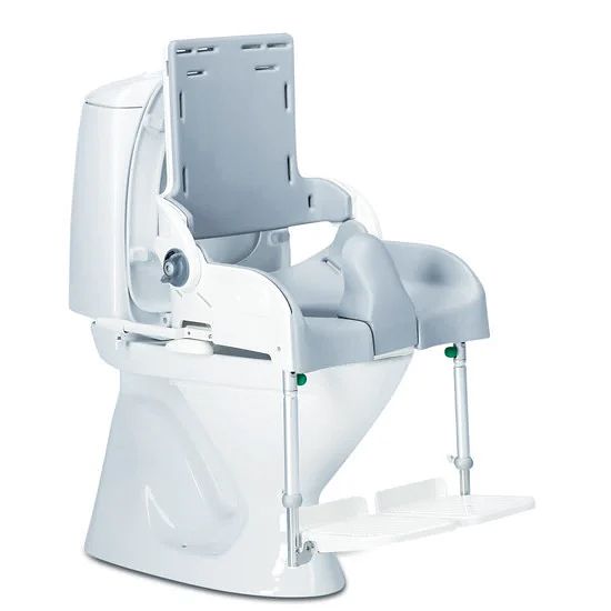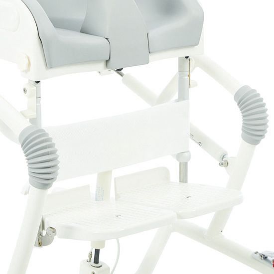 The seat can be tilted and the back can be angled. The Flamingo can therefore assist children with special needs with their seating posture. The Flamingo is easy to clean and facilitates personal hygiene. It is adjustable in height and it can be placed over the toilet or can be used with a pan.