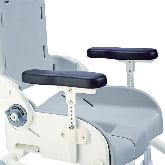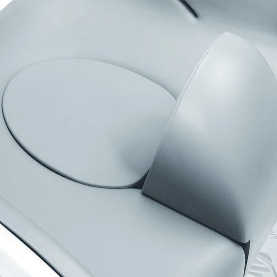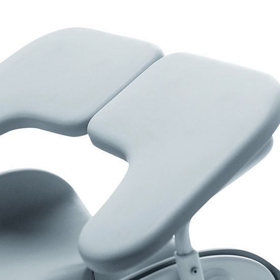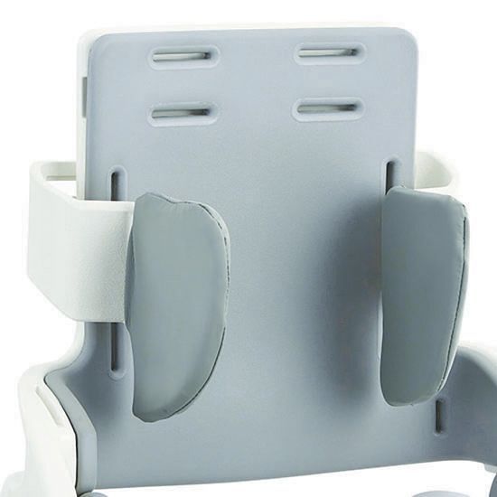 As standard the Flamingo seat is delivered with a narrow open backrest. For more support for the trunk either swing-away side supports can be mounted or sides with PU inlay, which surround and support the shoulders can be used.