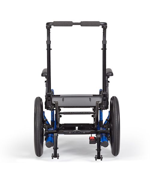 Compact knuckle design on the fold down stroller handle allows for a range of motion from 30° to 270°. This ensures the caretaker always has comfortable hand positioning no matter the angle of tilt the chair is in. It also enables the handles to be folded down flush tight against the back canes so the chair can be transported in tight spaces much easier.