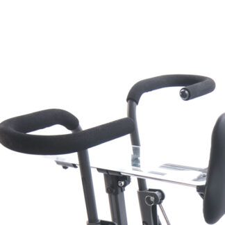 Active standing provides lower body range of motion and upper body strengthening. Unlike passive standers, users move the handles with their arms (or a caregiver can assist) which creates a reciprocal movement in the legs. The full range seat has hinged, break-away sections for each leg that allow full leg extension while standing. This advanced stander enhances the medical benefits of standing and keeps the body in shape for medical breakthroughs. Numerous research studies suggest that use of an active standing frame can positively affect an individual’s health.