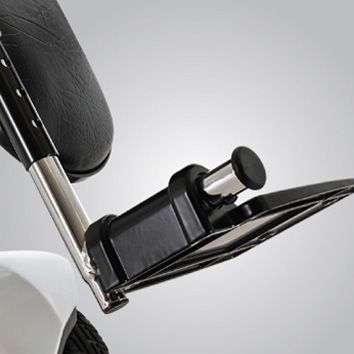 To start, we included standard comfort features such as providing two seat width options (20" or 18"w) with swing-out storage compartments below it. There’s also an accessory mount on the back, so you can add a cane holder or oxygen holder that you might need for your next journey.