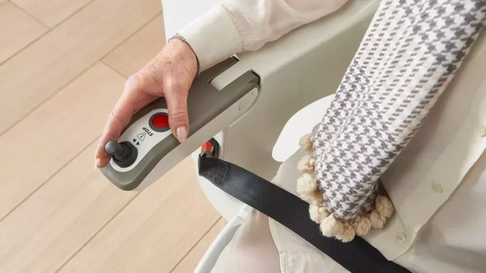 "I am so happy with my HomeGlide stairlift. It’s very comfortable, and the ride is super smooth. The service from the technicians from my local dealer was excellent, and I would highly recommend it to anyone looking for a new stairlift!"