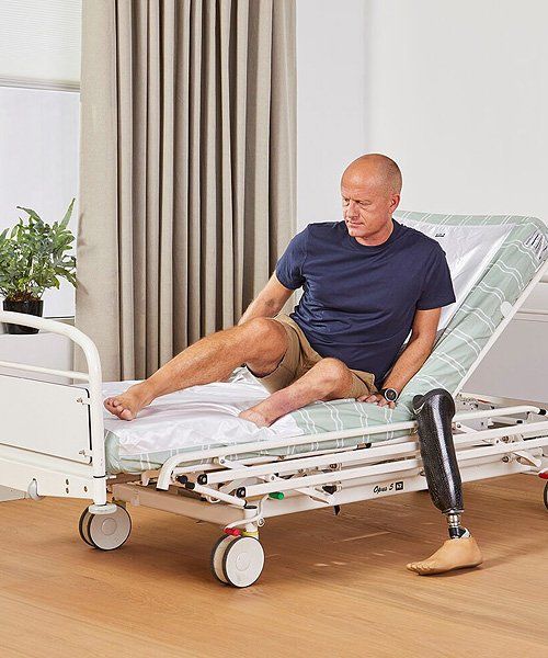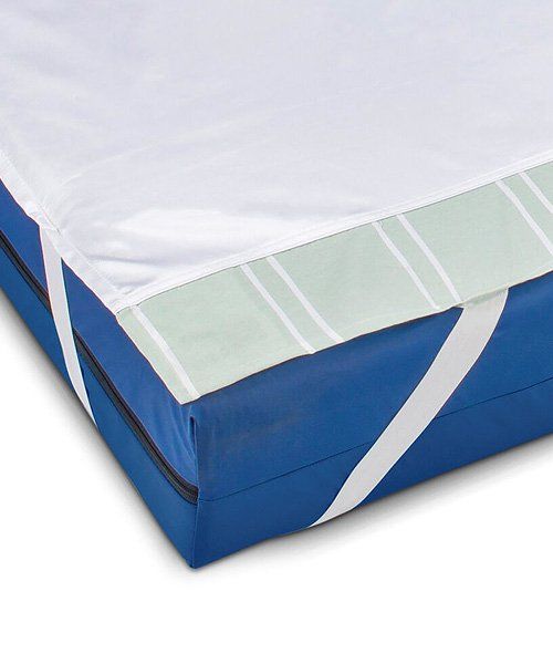 This sheet has elastic corner straps for fitting to the mattress. This is easy to fit for a single carer and works well when a thicker mattress is used.