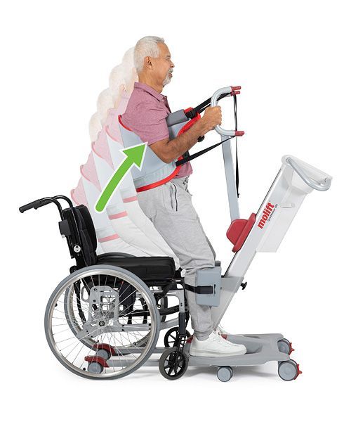 The Molift Quick Raiser 205 is a state-of-the-art sit-to-stand hoist with outstanding transfer capabilities and exceptional manoeuvrability. The design encourages a natural movement pattern and fulfils the lifting needs of users with some weight-bearing capacity.
