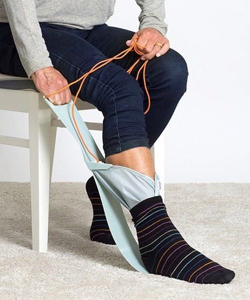 Socky long is the ideal solution when hand strength and mobility is restricted or you need to reduce the friction between the sock and floor/carpet.