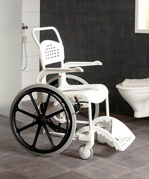 Etac Clean 24” self propelled shower commode chair has the same basic benefits as the other members of the Clean family – but allows the user to operate the chair independently.