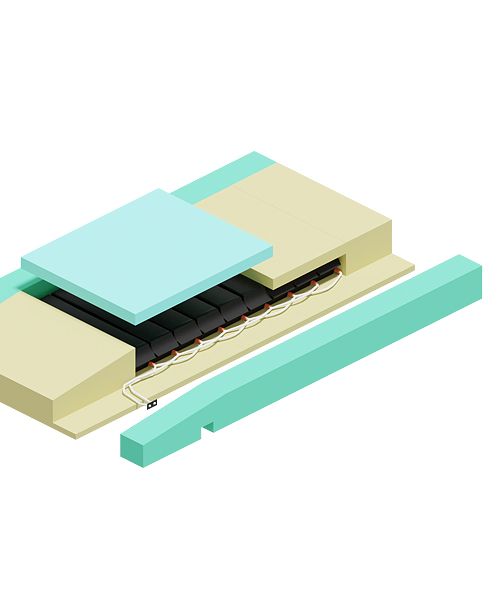 Starting at the head, the convoluted high resiliency foam improves client upper body mobility. Next is a cool climate visco gel swirl foam top layer at the torso and middle section for immersion and heat dissipation, followed by a 5-degree sloped foot section made with Serene™ foam to help transfer excess pressure from the heels. Beneath the top layer, interconnected chambers provide pressure redistribution, and there are 4” wide firm borders to ensure a solid transfer edge.