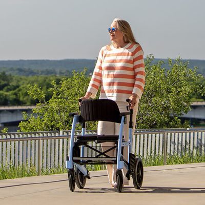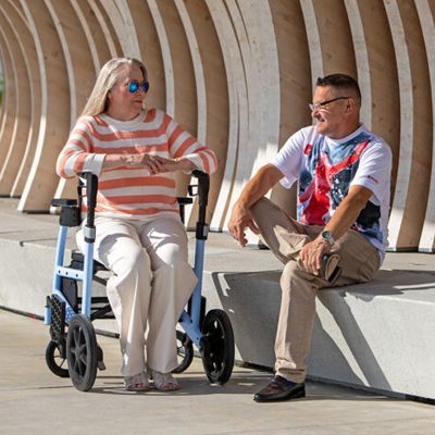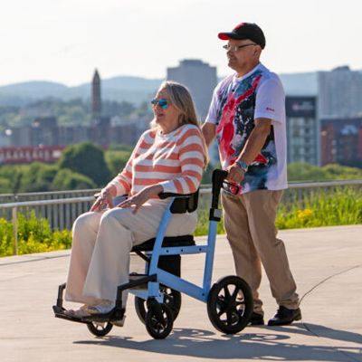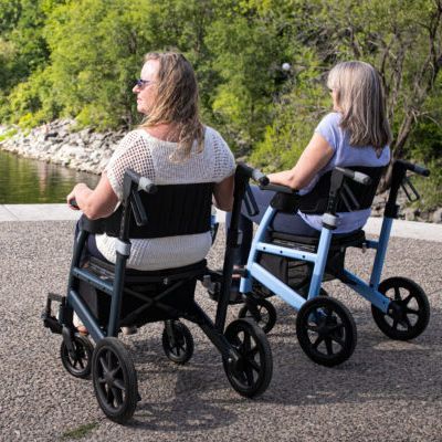 In seconds, you can swivel the flexible padded back rest from the rollator position to the transport chair, flip the handgrips around from the user position to the caregiver, and the user is ready to move. Unlike other rollators on the market, there’s no fussy instructions or need for tools.
