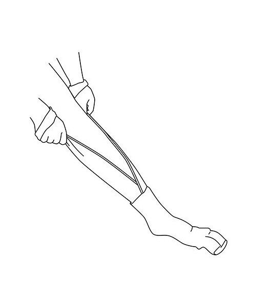 Fasten the Velcro, fold the nylon fabric. Slide the stocking over the Socky. Pull the hands through the handle and pull up the stocking by twisting Socky around the hands until Socky splits into two parts.