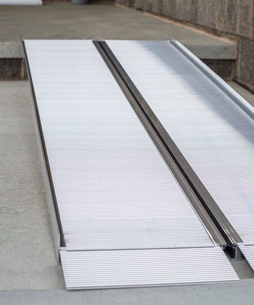 This portable ramp, with its single-fold design, sets up quickly and is ideal for scooters and wheelchairs. Made of lightweight aluminum with an easy-to-carry design, the SUITCASE Singlefold Ramp is fitted with ergonomically-designed handles and a full-length hinge for additional strength and stability. Designed for high traffic use, this durable ramp is available in 2’ to 8’ lengths and features an extruded slip-resistant tread for superior traction. Browse through the tabs below to learn more.
