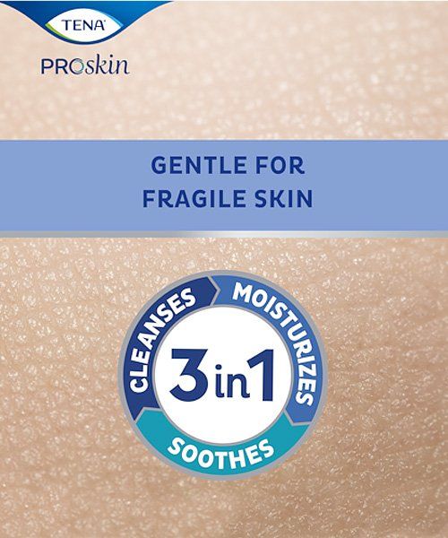 This gentle alternative to soap and water cleanses, moisturizes and soothes fragile aging skin. Convenient formula with no need to rinse with water. TENA ProSkin Cleansing Cream can be used when changing incontinence products or for full body cleansing. The caring cream is dermatologically tested, helps maintain the skin’s natural pH level, and is freshly scented to help control odor.