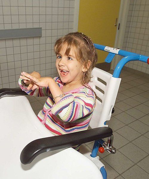 Tripp is a shower commode chair with the tilt mechanism on the left side. Tilting from the side enhances an ergonomically correct work position and enables eye contact during the tilting process.The size of Tripp makes it the perfect shower commode chair for children, teenagers and slender adults. Furthermore, both seat and back support can easily be removed. This enables fitting of an individual seat unit.