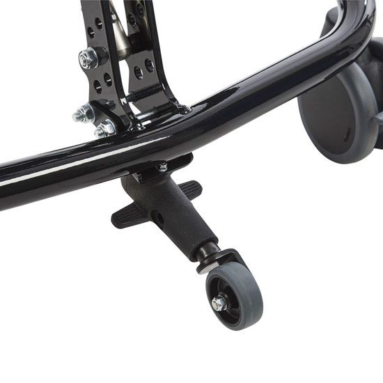 The height adjustable frame, which goes all the way down to 29 cm above floor level, in combination with anterior tilt eases standing transfer and ensures that all unnecessary and repetitive lifting is avoided.